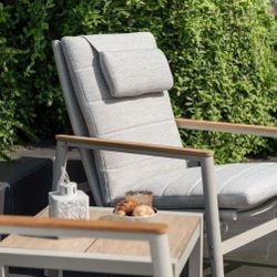 BRAND NEW Light Teak Recliner Lounge Chair Made of Die-cast Aluminum, Ideal Furniture For Outdoor