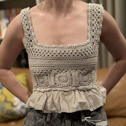 Vintage Crochet Boho Top | Linen Blend | Made in India Size S$20Delray Beach, FL
