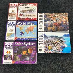 5 Kids Puzzle Set - Dinosaurs, World Map, Solar System & City Views (500 & 1000 Pieces)$20Fort Lauderdale, FL