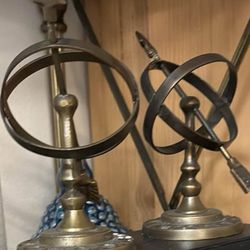 2 For $50. Brass gold metal armillary sphere atlas & arrow statues. Antique Vintage Decorative PAIR $50. Display statue, or use as paperweight.$50Boca Raton, FL