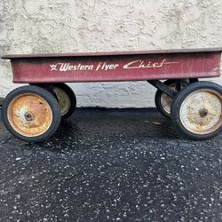 Rare Vintage Antique Western Flyer Champ Red Metal Pull Wagon 1950's Original$85Miami, FL