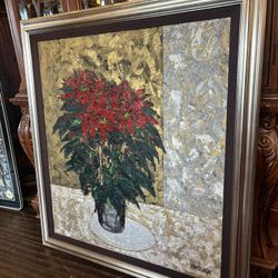 Textured painting of a poinsettia signed "MANSFELDOVA$300Fort Lauderdale, FL