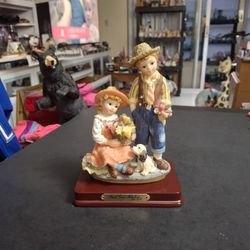 "Monti Fiero Alabastro" "Spain Style " Young Boy & Girl Sitting Together W/Smaller Dog Made From Polychrome Resin On Gold Plate Wood Stand $25Fort Lauderdale, FL
