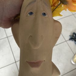 DEBBIE FECHER GRAMSTAD /signed/Handmade Studio Art Pottery Worried Head Vase '92$144Oakland Park, FL
