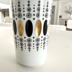 German Modernist Porcelain GEMMO Vase Gold & Black Decor by HEINRICH 1960s$80Miami, FL