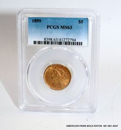 1899 United States 5 Dollar Gold Liberty Head Half Eagle PCGS MS63 Excellent condition, $1,389Boca Raton, FL