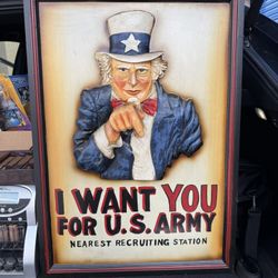 Original U.S. Korean War Newark New Jersey Army Recruitment Center Uncle Sam “I Want You” Carved Wood Sign - 19 ¾” x 28”$45Hialeah, FL