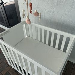 White Mini Crib + Mattress + Sheets + Mattress Protector $170Hialeah Gardens, FL