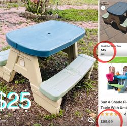 $25 Step2 Kids Picnic Table with a hole for umbrella great for indoors/outdoors,heavy duty plastic$25Boca Raton, FL