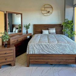 Wood Bedroom 🪵 Set 4 Pcs Wood Set New Queen Set$799Oakland Park, FL