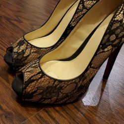 Beautiful champagne and black lace size 8.5 heels$15Miramar, FL