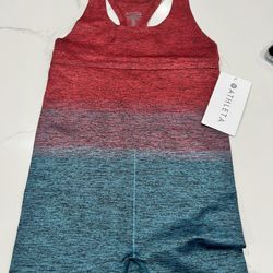 NWT Athleta Women Ombre Red Blue Multi Seamless Workout Relay Bodysuit Size XS$50Hialeah, FL
