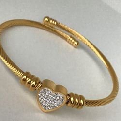 Ladies Bracelet with Sparkling CZ Heart- Gold On Stainless Steel *Pickup Boca Raton$29Boca Raton, FL