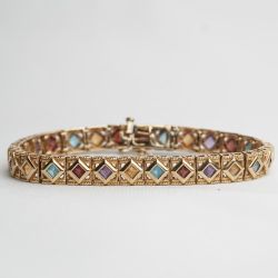 14K 545 Yellow Gold Multi-Gemstone Bracelet Vibrant Square-Cut Gems β 7" Length$2,299Halndle Bch, FL