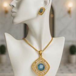 Royal Blue Gemstone Necklace & Earring Set – Gold Filigree Elegance $35Miami, FL