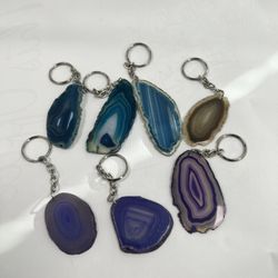 (7)Natural Agate Slice Keychains – Blue & Purple Crystal Stone Key Rings$65Oakland Park, FL