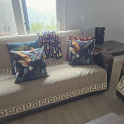 Sleeper Couch 6ft Long - Comes With Pillows, Picture, And Two Wooden End Tables$500Deerfield Beach, FL