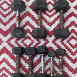 OLD RUBBER DUMBBELLS (THREE 10s) (THREE 5s) & 2.5lb. & 3lb. = 50 total pounds$25Boca Raton, FL