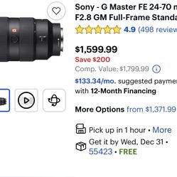 Sony G Master 2.8 24-70 Lens$1,000Hollywood, FL