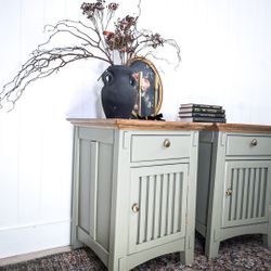 AVAILABLE Boho Modern Green Side Tables/End Tables – Aged Faux Top $399Fort Lauderdale, FL