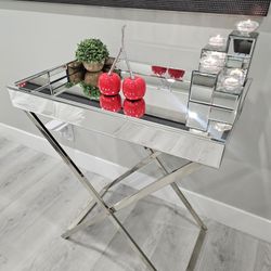 Mirrored Folding End Tray Table With Plant And Candles / Mesa Auxiliar Plegable De Espejo Con Planta 🔥🔥$99Fort Lauderdale, FL
