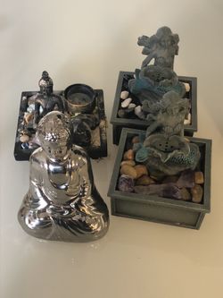 Set of 2 mermaids small water fountains , 1 Buddha candle and incense holder + 1 silver Buddha$50Coral Springs, FL