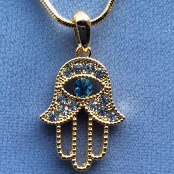 Ladies Hamsa Necklace 3/4β with Sparkling Clear Crystals & Blue Crystal Eye On Snake Chain- Gold Plate *Ship Nationwide Or Pickup Boca Raton$20Boca Raton, FL