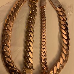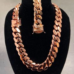 Set Chain & Bracelet 20mm Miami Cuban Link Pink Red Rose Gold Plated Chain Necklace 18k & 14k Crab Old School Regular Lock$200Pompano Beach, FL