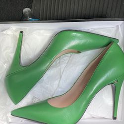Green leather Double G detail on heel Pointed toe Leather sole High heel (4”) Sz 42$150Pembroke Pines, FL