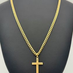 10k solid yellow gold Cuban chain necklace 23.5” 5mm & 14k solid gold cross pendant charm$5,300Boca Raton, FL