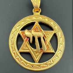 14k solid yellow gold Vintage David star Chai pendant charm$250Boca Raton, FL