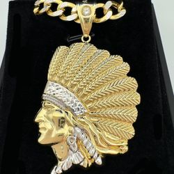 10k solid two tone gold Indian chief Apache head pendant & 22.5” curb chain 8mm Necklace$3,300Boca Raton, FL