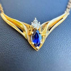 10k yellow gold Natural 0.5Ct Marquise Sapphire 0.01Ct Diamond 18” Necklace$750Boca Raton, FL