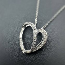 14k solid white gold Necklace chain with Heart pendant 18” 1mm 4.2 grams 0.2CTW$700Pompano Beach, FL