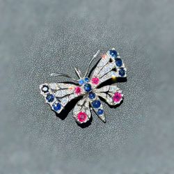Vintage Jewelry .950 platinum butterfly natural diamond sapphire ruby 9.50CTW brooch pin$3,100Boca Raton, FL