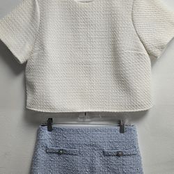 Abercrombie Tweed Set M Ivory Crop Top H&M Blue Skirt Chic Outfit$30Halndle Bch, FL