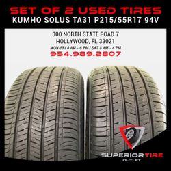 215/55/17 SET OF 2 USED TIRES KUMHO SOLUS TA31 P215/55R17 94V 2155517$150Pembroke Park, FL