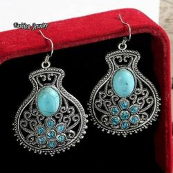 Tribal Tibetan Silver Turquoise Crystal Stone Filigree Vase Shaped Earrings$15Fort Lauderdale, FL