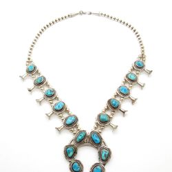 Vintage Navajo Sterling Silver Turquoise Squash Blossom Necklace Native American$1,599Pompano Beach, FL