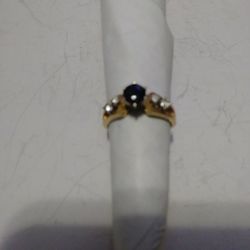 14 Karat Gold And Ring With Diamond And One Sapphire In The Center Ring Size 8 And 1/2 Use$655Fort Lauderdale, FL