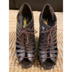 BEAUTIFUL YSL BROWN LEATHER LACE-UP WEDGES!!! - SIZE 37$100Pembroke Pines, FL