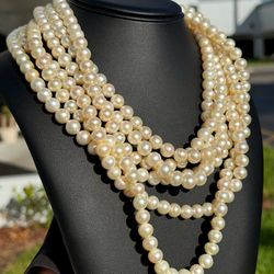 Vintage Antique Jewelry 14k solid yellow gold three lane pearl diamond ruby 2.30CTW necklace chain 42.00" 9.00mm width 396.9g$2,500Pompano Beach, FL