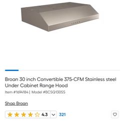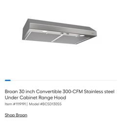 Broan 30in Convertible Stainless Steel Range Hood$125Tampa, FL