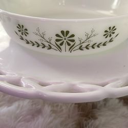 Vintage Glasbake 238 White Milk Glass Green Daisy Flowers Baking Casserole Dish$5Holiday, FL