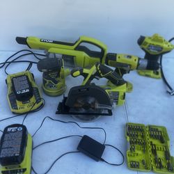 Ryobi P737D. Ryobi P505 Saw. Ryobi P271. Ryobi P411 Sander. Ryobi PCL700 Vacuum. This is nice 5 tool ryobi lot with 2 batteries and 2 chargers. Both b$125Wesley Chapel, FL