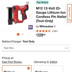Milwauke 12v Pin Nailer $90New Port Richey, FL