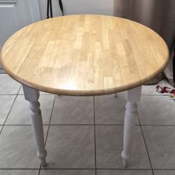 Round Drop-Leaf Dining Table, White/Natural. Sturdy