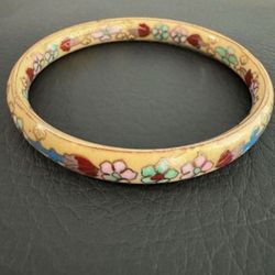 Vintage Beige Cloisonne Bangle Oriental Enamel 80s Asian Floral Bracelet Blue purple Bangle 3” bracelet In good condition Delve into the elegance of$18Hobe Sound, Florida