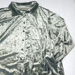 BELLE by Kim Gravel Velvet Blouse Shirt Plus Size 1X Solid Green Gray Button Up$18Ocean Brz Pk, FL