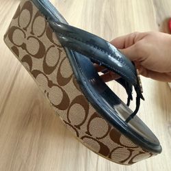 Coach Nella patent leather signature jacquard wedge sandal navy blue khaki shoe$40Palm City, FL
